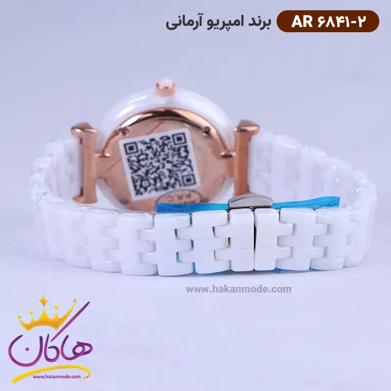 قفل ساعت امپریو آرمانی زنانه سرامیکی سفید صفحه رزگلد AR 6841/2