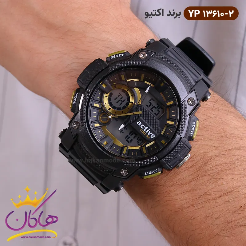 ساعت اکتیو پسرانه دو زمانه مشکی طلایی 2-13610 yp اصل
