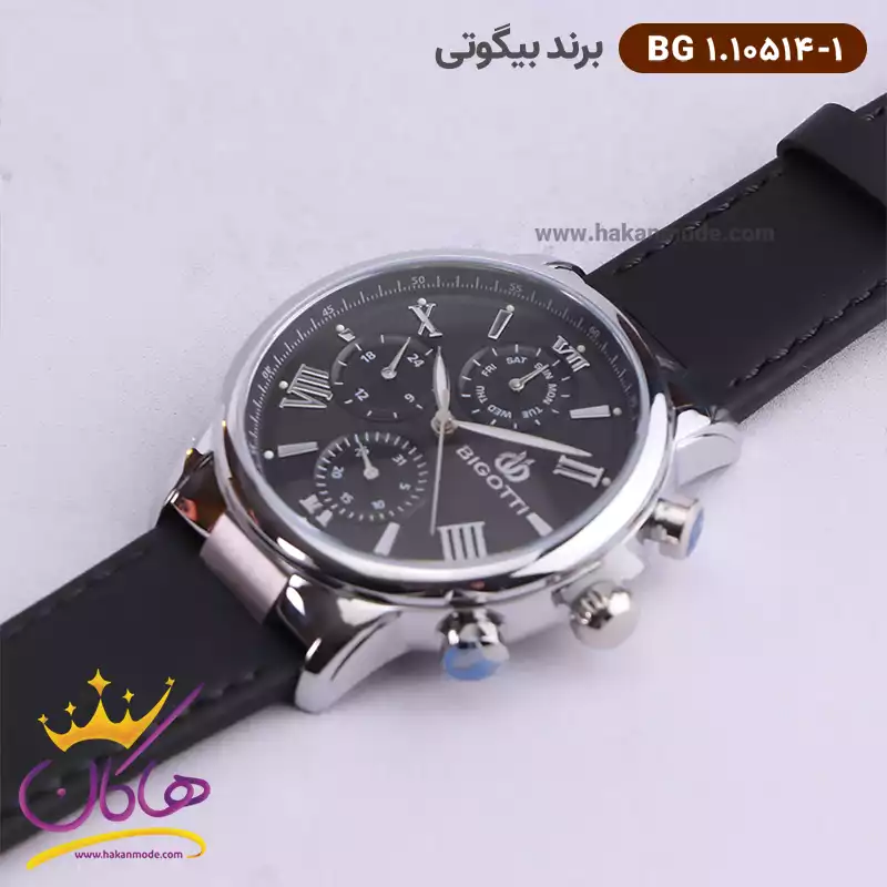 بهترین قیمت ساعت بیگوتی مردانه بند چرم مشکی