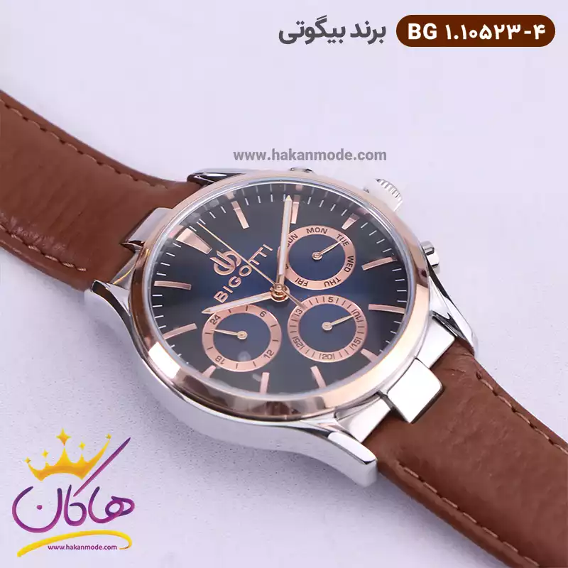 بهترین قیمت ساعت بیگوتی مردانه بند چرم قهوهای