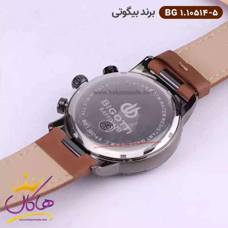 ساعت بیگوتی مردانه بند چرمی قهوه ای فول تایم کد BG.1.10514-5 نمای پشتی