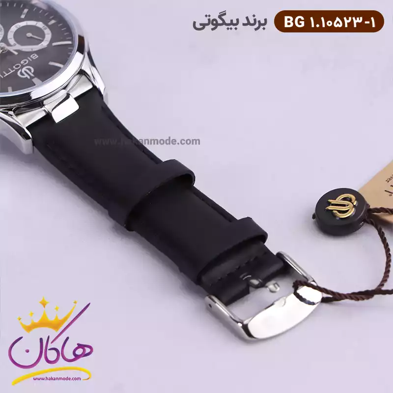 بهترین قیمت ساعت بیگوتی مردانه بند چرم مشکی