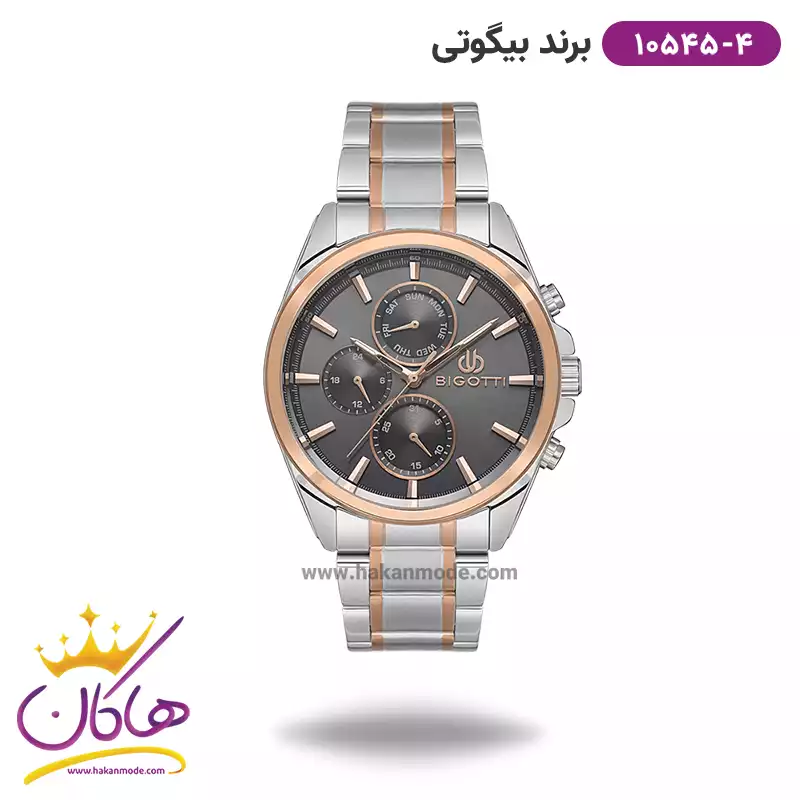 بهترین قیمت ساعت بیگوتی مردانه استیل نقرهای/رزگلد