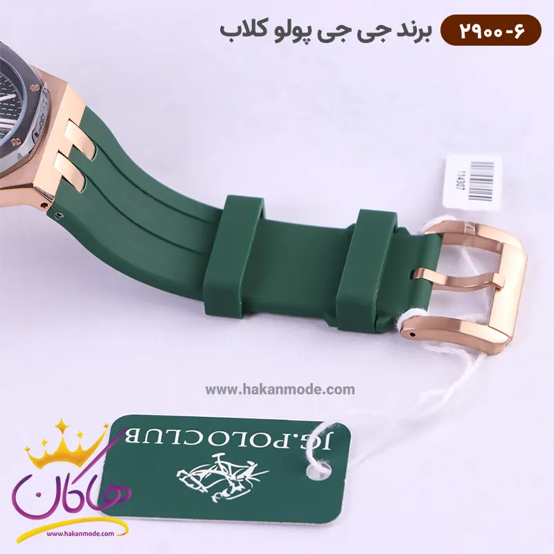 قفل ساعت جی جی پولو مردانه بند رابر سبز کد 2900/6