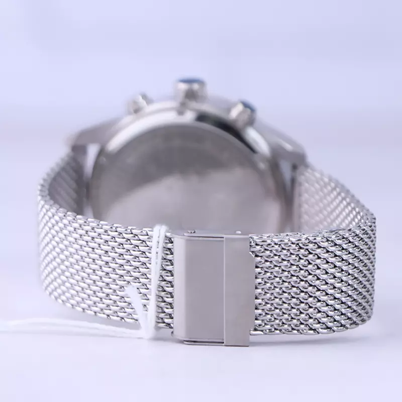 ساعت جی جی پولو مردانه فلزی بند حصیری نقره ای ظاهری مدرن و جذاب دارد. این ساعت استیل نقرهای، رنگ ثابت و ضدحساسیت است. اگر به داخل ساعت نگاه کنید، صفحهی این ساعت به رنگ سبز است و سه صفحه دایرهای کوچک میبینید که هر کدام از آنها نشان دهندهی پارامتری خاص هستند. یک صفحه که سمت راست قرار دارد روزهای هفته را نشان میدهد. صفحهی سمت چپ ساعت را به صورت 24 ساعته نشان میدهد. اگر از افرادی هستید که امور خود را بر اساس تایم 24 ساعته تنظیم میکنید این صفحه کوچک به کار شما میآید. یک صفحه که پایین قرار دارد روزهای ماه را نشان میدهد. بند ساعت، حصیری و از نوع فلز مرغوب است که باعث تعرق و خارش نمیشود. قاب ساعت رزگلد و اندکسهای آن به صورت خطی رزگلد و عقربههای آن شبنما طراحی شدهاند. لوگوی برند جی جی پولو کلاب را زیر عدد ۱۲ میبینید. قفل این ساعت از نوع کلیپسی است به صورت ریلی میتوانید آن را تنظیم کنید. در کنار صفحه یک پیچ کوک و دو دکمه برای تنظیم زمان وجود دارد.