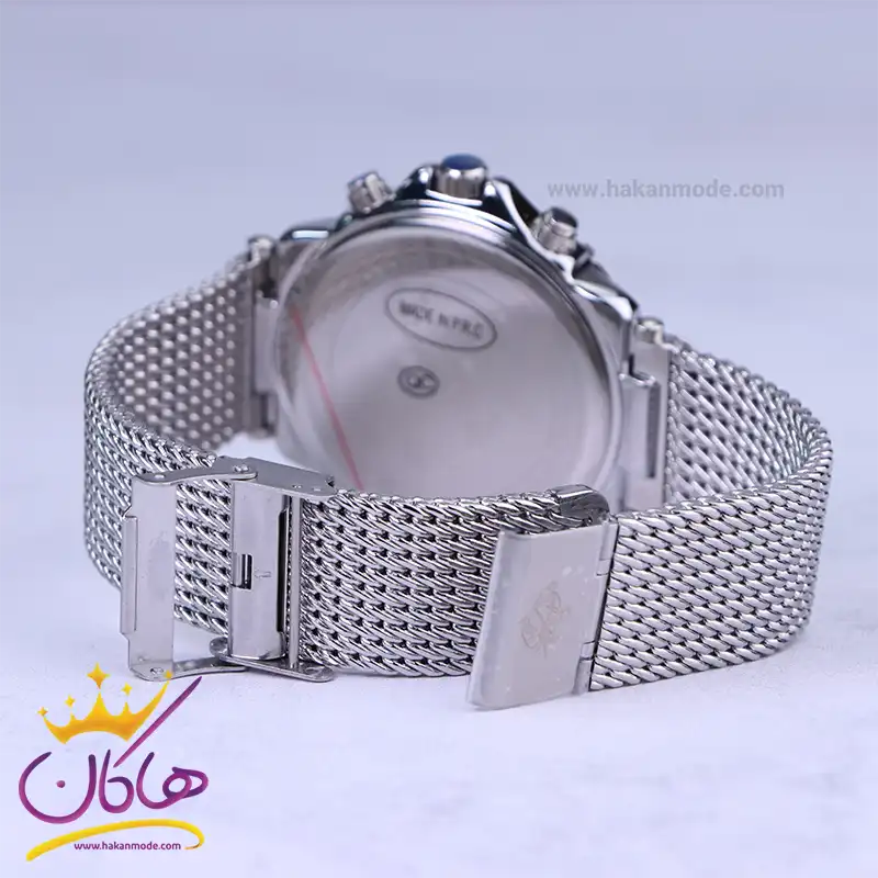 خرید ساعت جی جی پولو مردانه فلزی بند حصیری نقره ای سه موتوره