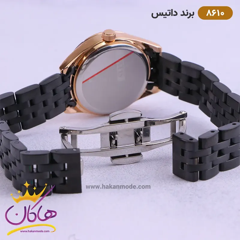 قفل ساعت داتیس زنانه بند استیل مشکی قاب رزگلد 8610/1