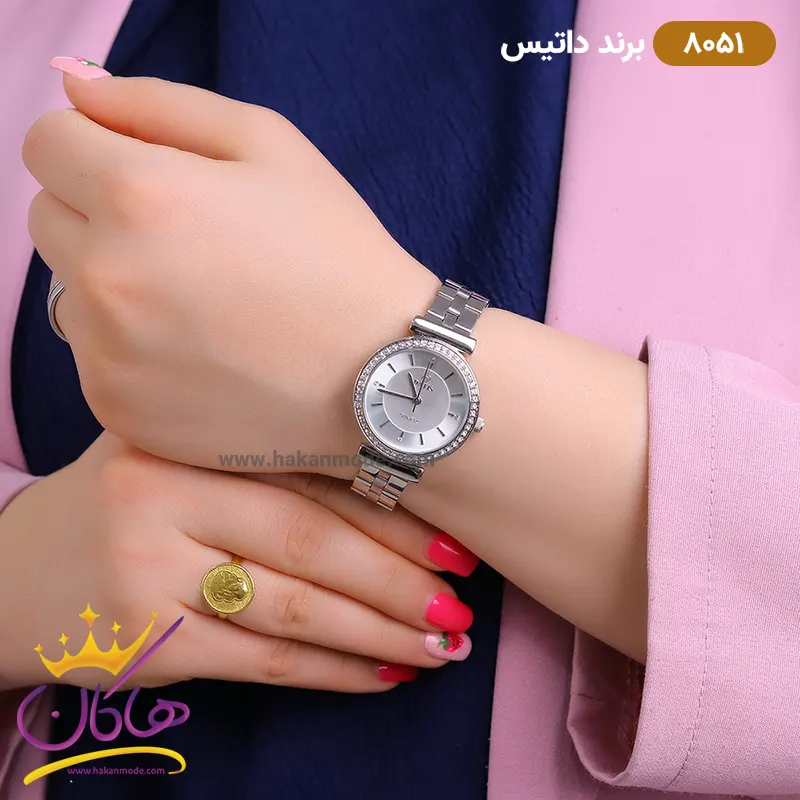 ساعت داتیس زنانه نقره ای مدل 8051 نمای روی دست مدل