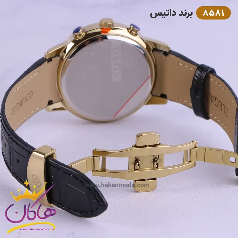 خرید ساعت داتیس مردانه بند چرم مشکی قاب طلایی 8581/3