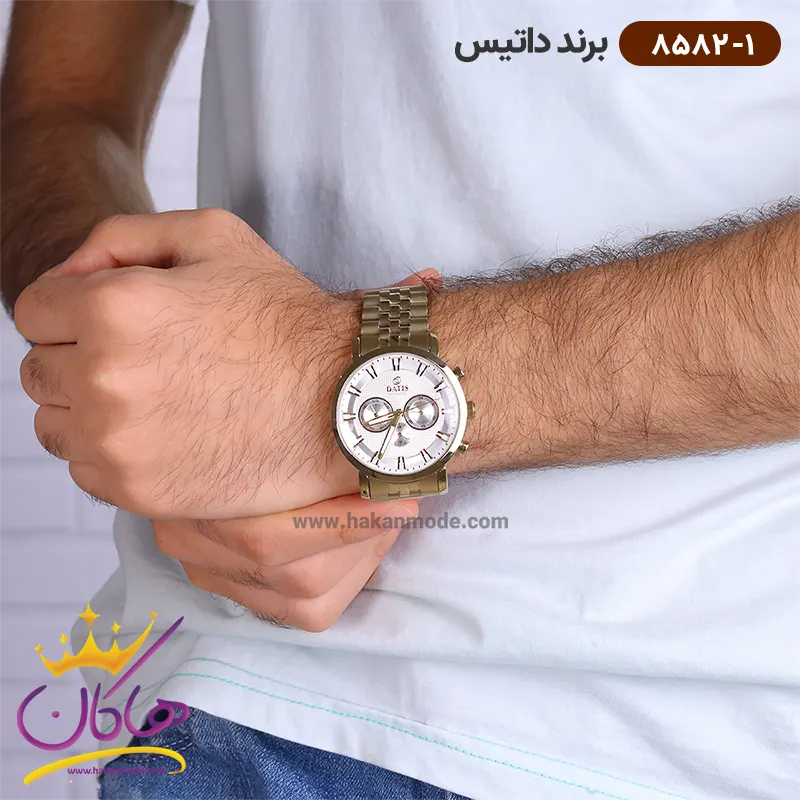 خرید ساعت داتیس مردانه فلزی طلایی صفحه سفید 8582/1
