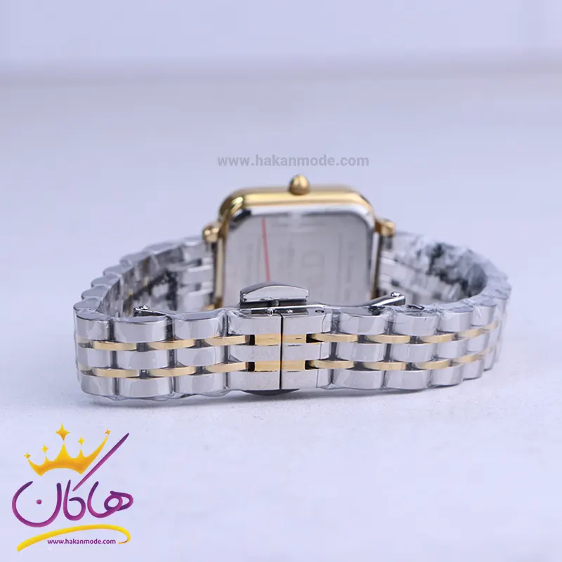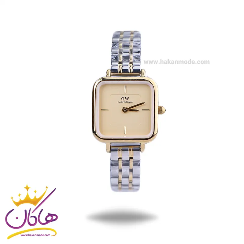 ساعت دنیل ولینگتون زنانه فلزی ظاهری کلاسیک و جذاب دارد. این ساعت استیل نقره‌ای طلایی، رنگ ثابت و ضدحساسیت است. اصلی‌ترین چیزی که در ساعت زنانه دنیل ولینگتون توجه ما را به خود جلب می‌کند، قاب مربع شکل و طلایی رنگ ساعت است که بر شیکی آن افزوده است. اگر به درون ساعت دقت کنید، صفحه‌ی ساعت زرد رنگ است که عقربه‌ها نیز، طلایی و اندکس‌ها خطی و طلایی طراحی شده‌اند. نام برند دنیل ولینگتون زیر ساعت 12 دیده می‌شود. در کنار صفحه یک پیچ کوک برای تنظیم زمان وجود دارد. بند ساعت، فلزی و از نوع استیل مرغوب است که باعث تعرق و خارش نمی‌شود. طرح این بند از یک بافت ریز و درشت تشکیل شده و نقره‌ای طلایی است و قفل این ساعت عقربه‌ای زنانه از مدل پروانه‌ای دکمه‌دار است که از دسته قفل‌های محکم و مطمئن است.