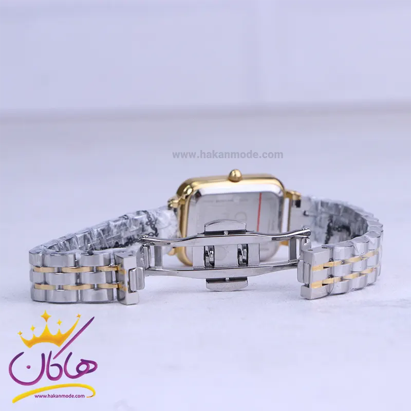 ساعت دنیل ولینگتون زنانه فلزی نقرهای طلایی ظاهری کلاسیک و جذاب دارد. این ساعت استیل نقرهای طلایی، رنگ ثابت و ضدحساسیت است. اصلیترین چیزی که در ساعت زنانه دنیل ولینگتون توجه ما را به خود جلب میکند، قاب مستطیل شکل و طلایی رنگ ساعت است که بر شیکی آن افزوده است. اگر به درون ساعت دقت کنید، صفحهی ساعت مشکی رنگ است که عقربهها نیز، طلایی و اندکسها خطی و طلایی طراحی شدهاند. نام برند دنیل ولینگتون زیر ساعت 12 دیده میشود. در کنار صفحه یک پیچ کوک برای تنظیم زمان وجود دارد. بند ساعت، فلزی و از نوع استیل مرغوب است که باعث تعرق و خارش نمیشود. طرح این بند از یک بافت ریز و درشت تشکیل شده که نقرهای طلایی است و قفل این ساعت عقربهای زنانه از مدل پروانه ای دکمهدار است که از دسته قفلهای محکم و مطمئن است.