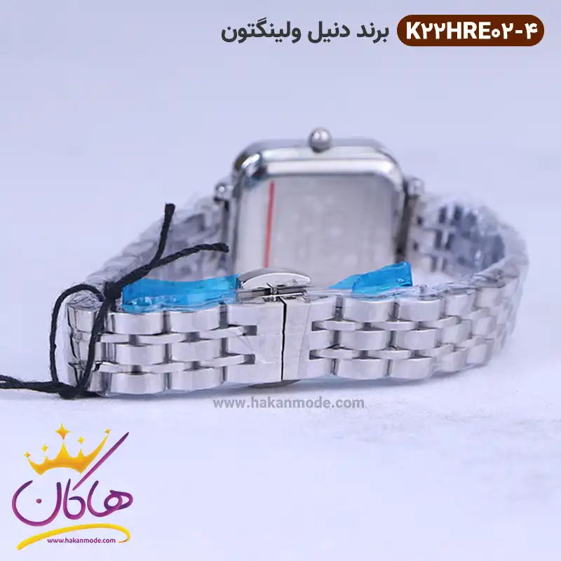 ساعت دنیل ولینگتون زنانه فلزی نقره ای ظاهری کلاسیک و جذاب دارد. این ساعت استیل نقره ای، رنگ ثابت و ضدحساسیت است. اصلیترین چیزی که در ساعت زنانه دنیل ولینگتون توجه ما را به خود جلب میکند، قاب مربع شکل و نقره ای رنگ ساعت است که بر شیکی آن افزوده است. اگر به درون ساعت دقت کنید، صفحهی ساعت سورمه ای رنگ است که عقربهها نیز، نقره ای و اندکسها خطی و نقره ای طراحی شدهاند. نام برند دنیل ولینگتون زیر ساعت 12 دیده میشود. در کنار صفحه یک پیچ کوک برای تنظیم زمان وجود دارد. بند ساعت، فلزی و از نوع استیل مرغوب است که باعث تعرق و خارش نمیشود. طرح این بند از یک بافت ریز و درشت تشکیل شده است و قفل این ساعت عقربهای زنانه از مدل پروانه ای دکمهدار است که از دسته قفلهای محکم و مطمئن است.