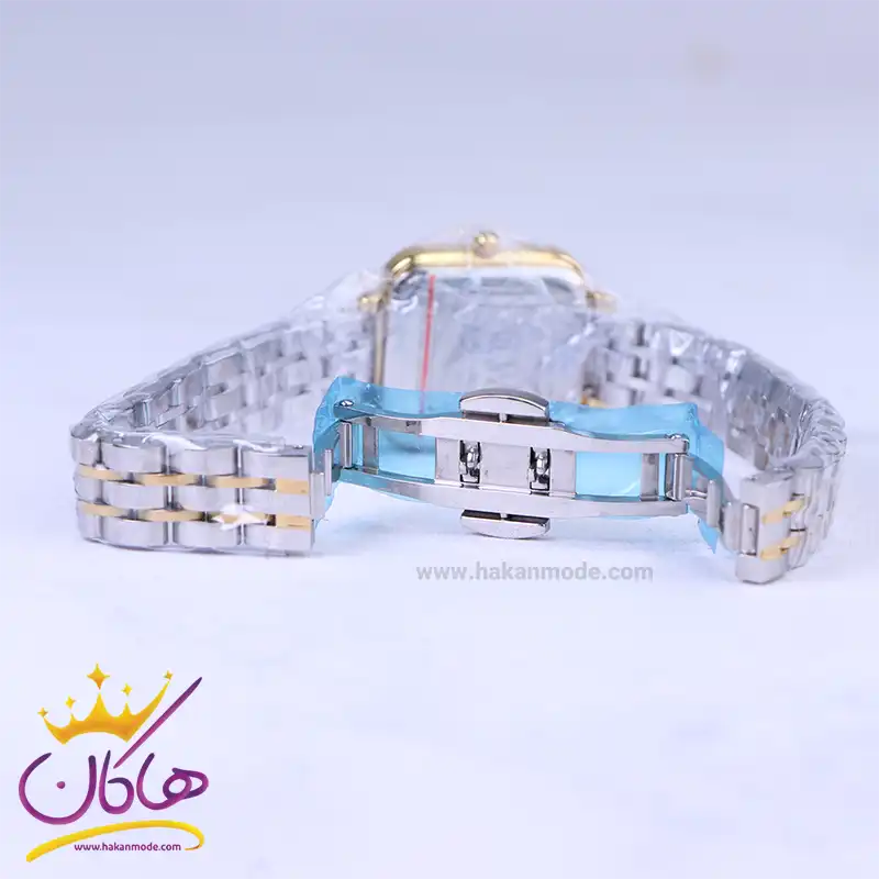 ساعت دنیل ولینگتون زنانه فلزی نقره ای طلایی ظاهری کلاسیک و جذاب دارد. این ساعت استیل، رنگ ثابت و ضدحساسیت است. اصلیترین چیزی که در ساعت زنانه دنیل ولینگتون توجه ما را به خود جلب میکند، قاب مربع شکل و طلایی رنگ ساعت است که بر شیکی آن افزوده است. اگر به درون ساعت دقت کنید، صفحهی ساعت سفید رنگ است که عقربهها نیز، طلایی و اندکسها خطی و طلایی طراحی شدهاند. نام برند دنیل ولینگتون زیر ساعت 12 دیده میشود. در کنار صفحه یک پیچ کوک برای تنظیم زمان وجود دارد. بند ساعت، فلزی و از نوع استیل مرغوب است که باعث تعرق و خارش نمیشود. طرح این بند از یک بافت ریز و درشت تشکیل شده است و قفل این ساعت عقربهای زنانه از مدل پروانه ای دکمهدار است که از دسته قفلهای محکم و مطمئن است.