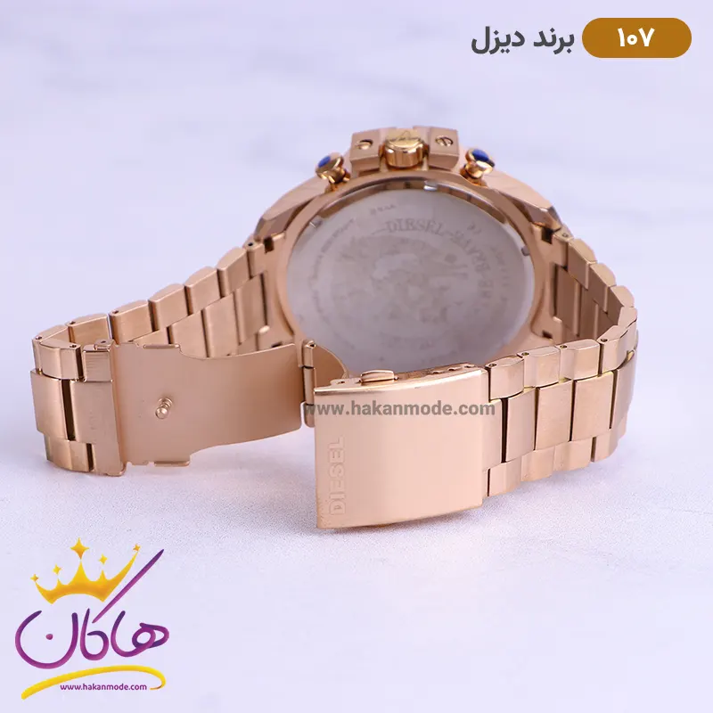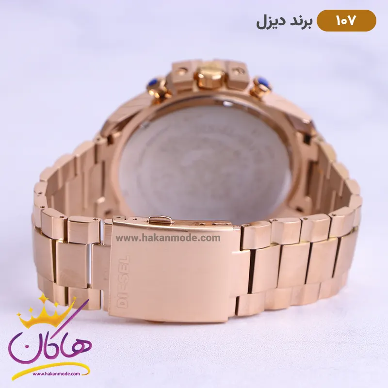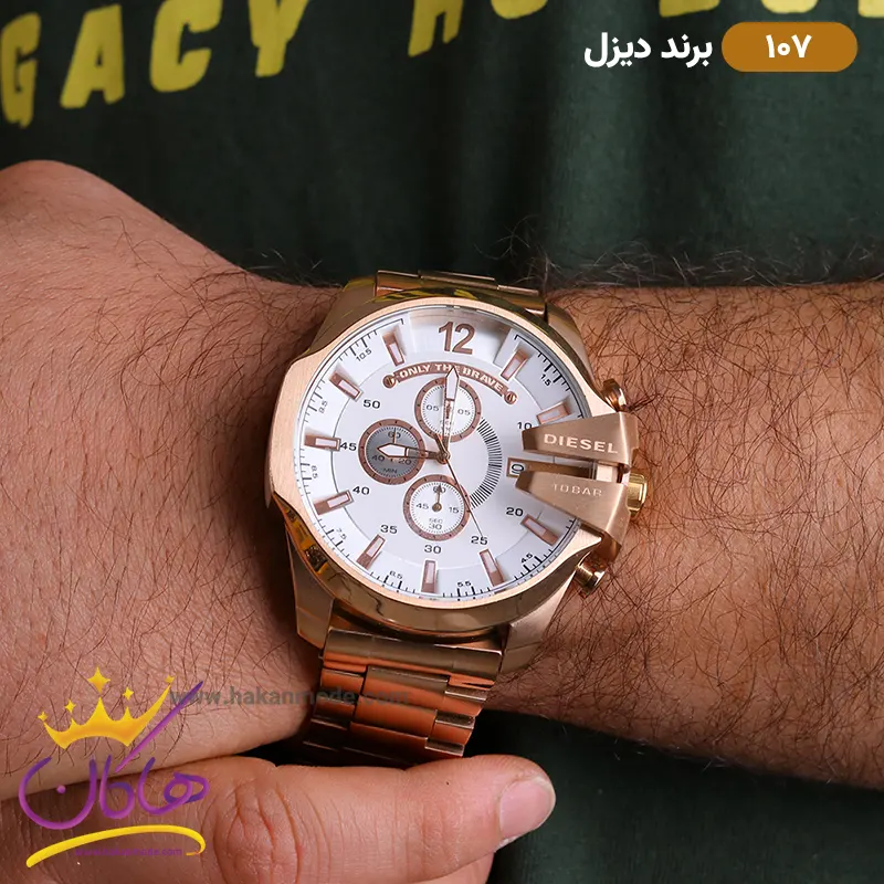 ساعت دیزل شاخدار رز گلد صفحه سفید مردانه کد 107
