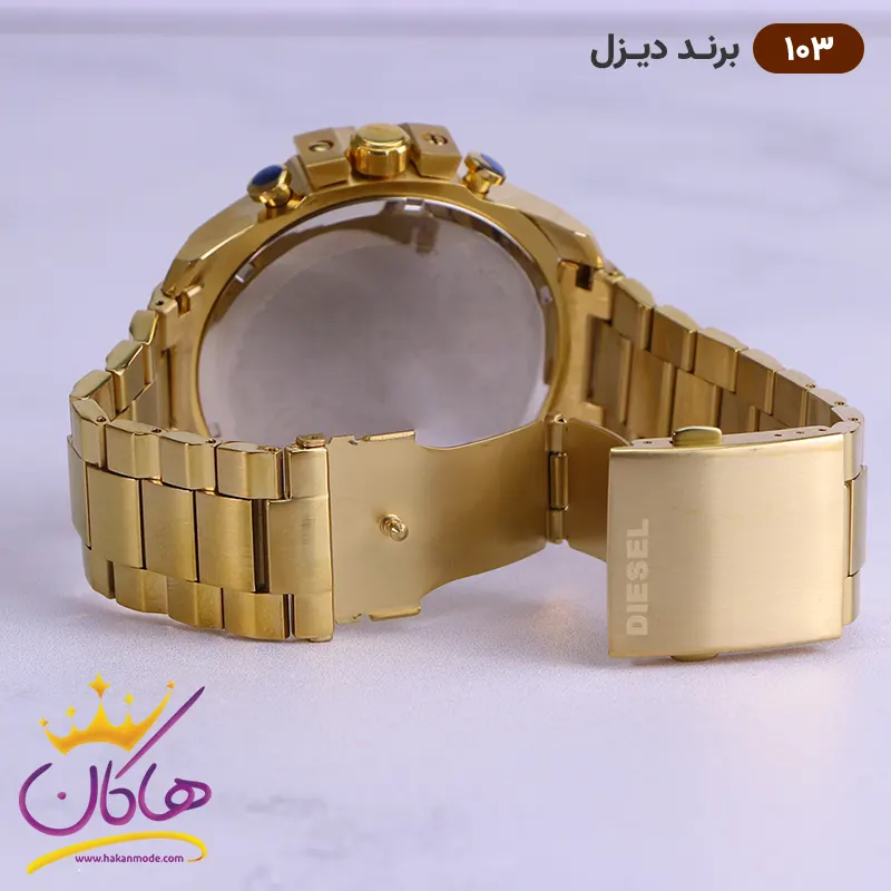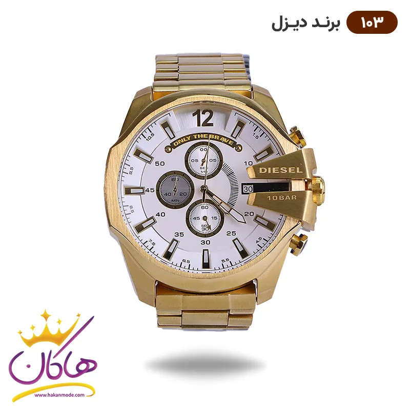 ساعت دیزل شاخدار طلایی صفحه سفید مردانه | کد 103