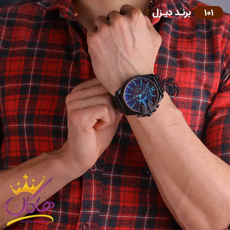 بهترین قیمت ساعت دیزل شاخدار مشکی شیشه هفت رنگ مردانه