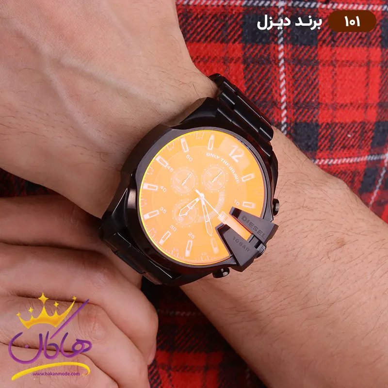 ویژگی ساعت دیزل شاخدار مشکی شیشه هفت رنگ مردانه