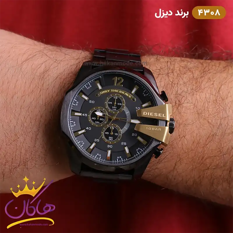 خرید تک و عمده ساعت دیزل شاخدار مشکی طلایی