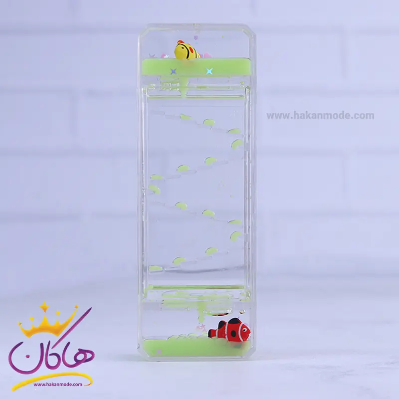 خرید ساعت ژلهای برای افرادی که علاقهمند به اشیا فانتزی و تزئینی هستند، بسیار جالب است و محدودیت سنی ندارد. این ساعت روغنی یک وسیلهی ضداسترس و سرگرمی جذاب است. این دکوری متفاوت مستطیل شکل است که درون آن دو عدد ماهی نمو شناور دیده میشود. با چرخش و یا سر و ته کردن این ساعت مایع سبز رنگ به صورت قطرات کوچک و زیگزاگی به سمت پایین شروع به حرکت میکند.