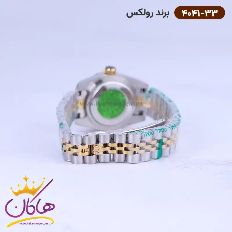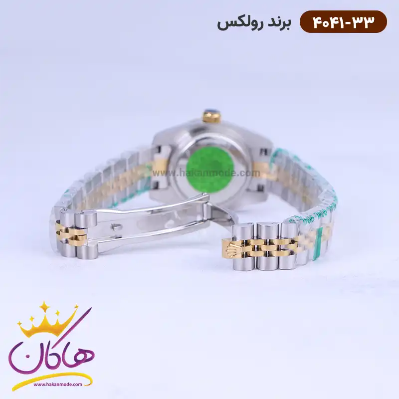 در خرید ساعت رولکس زنانه فلزی، توجه داشته باشید که از نظر قیمت در حد متوسط و از نظر کیفیت از بهترین نمونه های ساعت “های کپی” است. موتور این ساعت ساخت ژاپن و از نوع کوارتز است. این مدل ساعت عقربه‌ای زنانه جدید، تک موتوره است و چون موتور تمام انرژی خود را فقط صرف چرخاندن عقربه‌ها می‌کند، هم موتور و هم باتری طول عمر بیشتری دارند. ساعت رولکس زنانه فلزی دیت جاست نقره ای طلایی 4041/33 دارای استاندارد 3 ATM است یعنی تا حد شستشوی دست‌ها ضدآب است. داشتن یک‌سال گارانتی موتور و پنج سال ضمانت تعویض باتری از دیگر دلایل محبوبیت این ساعت مچی است. این ساعت بیشتر برای استایل کژوال و استفاده روزانه مناسب است، پس با خیال راحت آن را به دست بیندازید و به مهمانی، خرید یا دانشگاه بروید.
