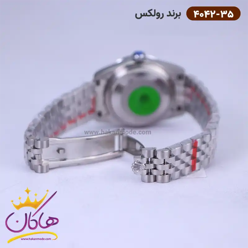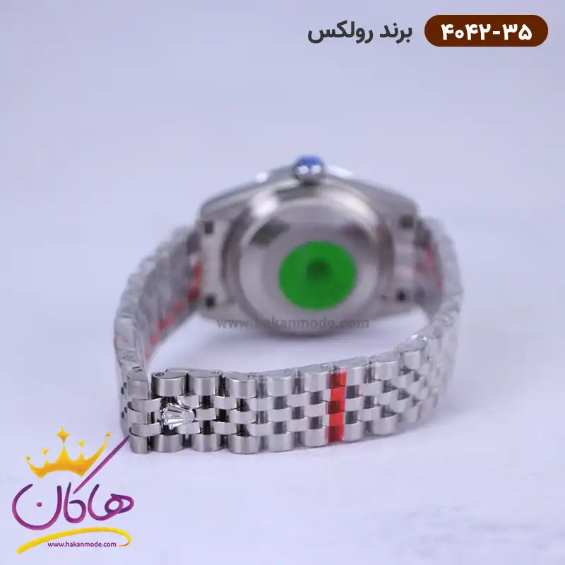 در خرید ساعت رولکس زنانه فلزی، توجه داشته باشید که از نظر قیمت در حد متوسط و از نظر کیفیت از بهترین نمونه های ساعت “های کپی” است. موتور این ساعت ساخت ژاپن و از نوع کوارتز است. این مدل ساعت عقربهای زنانه جدید، تک موتوره است و چون موتور تمام انرژی خود را فقط صرف چرخاندن عقربهها میکند، هم موتور و هم باتری طول عمر بیشتری دارند. ساعت رولکس زنانه فلزی دیت جاست نقره ای 4042/35 دارای استاندارد 3 ATM است یعنی تا حد شستشوی دستها ضدآب است. داشتن یکسال گارانتی موتور و پنج سال ضمانت تعویض باتری از دیگر دلایل محبوبیت این ساعت مچی است. این ساعت بیشتر برای استایل کژوال و استفاده روزانه مناسب است، پس با خیال راحت آن را به دست بیندازید و به مهمانی، خرید یا دانشگاه بروید.