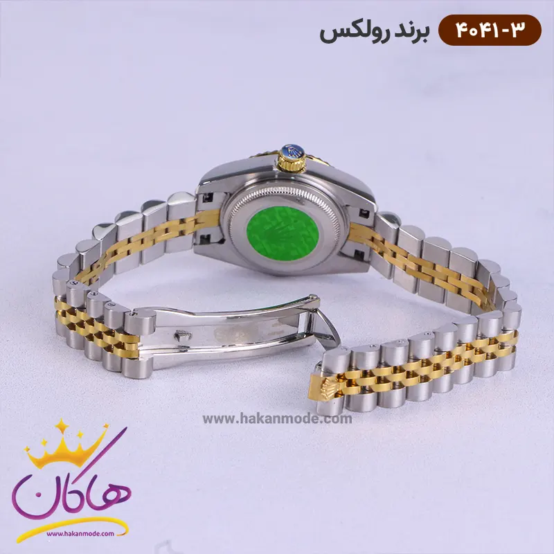 در خرید ساعت رولکس زنانه فلزی، توجه داشته باشید که از نظر قیمت در حد متوسط و از نظر کیفیت از بهترین نمونه های ساعت “های کپی” است. موتور این ساعت ساخت ژاپن و از نوع کوارتز است. این مدل ساعت عقربه‌ای زنانه جدید، تک موتوره است و چون موتور تمام انرژی خود را فقط صرف چرخاندن عقربه‌ها می‌کند، هم موتور و هم باتری طول عمر بیشتری دارند. ساعت رولکس زنانه فلزی دیت جاست صفحه مشکی 4041/3 دارای استاندارد 3 ATM است یعنی تا حد شستشوی دست‌ها ضدآب است. داشتن یک‌سال گارانتی موتور و پنج سال ضمانت تعویض باتری از دیگر دلایل محبوبیت این ساعت مچی است. این ساعت بیشتر برای استایل کژوال و استفاده روزانه مناسب است، پس با خیال راحت آن را به دست بیندازید و به مهمانی، خرید یا دانشگاه بروید.