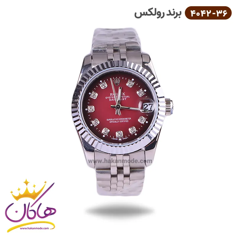 ساعت رولکس زنانه فلزی دیت جاست صفحه قرمز 4042/36