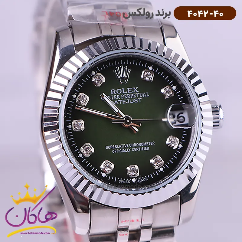 ساعت رولکس زنانه فلزی دیت جاست نقره ای صفحه سبز 4042/40