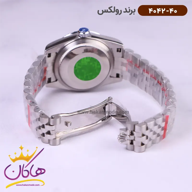 علاوه بر ویژگی های ظاهری اگر به داخل ساعت نگاه کنید، یک صفحه سبز رنگ مشاهده میکنید که اندکسهایی که زمان ساعت را نشان میدهند به شکل نگینی هستند. دور تا دور صفحه ساعت به صورت کنگرهای است. لوگوی برند رولکس که شبیه یک تاج است روی عدد 12 به خوبی مشخص است. داشتن عقربههای شبنما به شما این امکان را میدهد که در شب و محیطهای کم نور هم گذر زمان را ببینید. تقویم روی عدد 3 قرار گرفته است و با شیشه ذرهبینی که دارد کاملا خوانا و واضح است. بند ساعت در وسط بافت ریزتری دارد و در کنارهها درشتتر میباشد. قفل این ساعت از نوع دوتکه است و ساعت به راحتی از دست نمیافتد. رولکس یکی از تولید کنندههای محبوبترین ساعتهای مچی زنانه است.