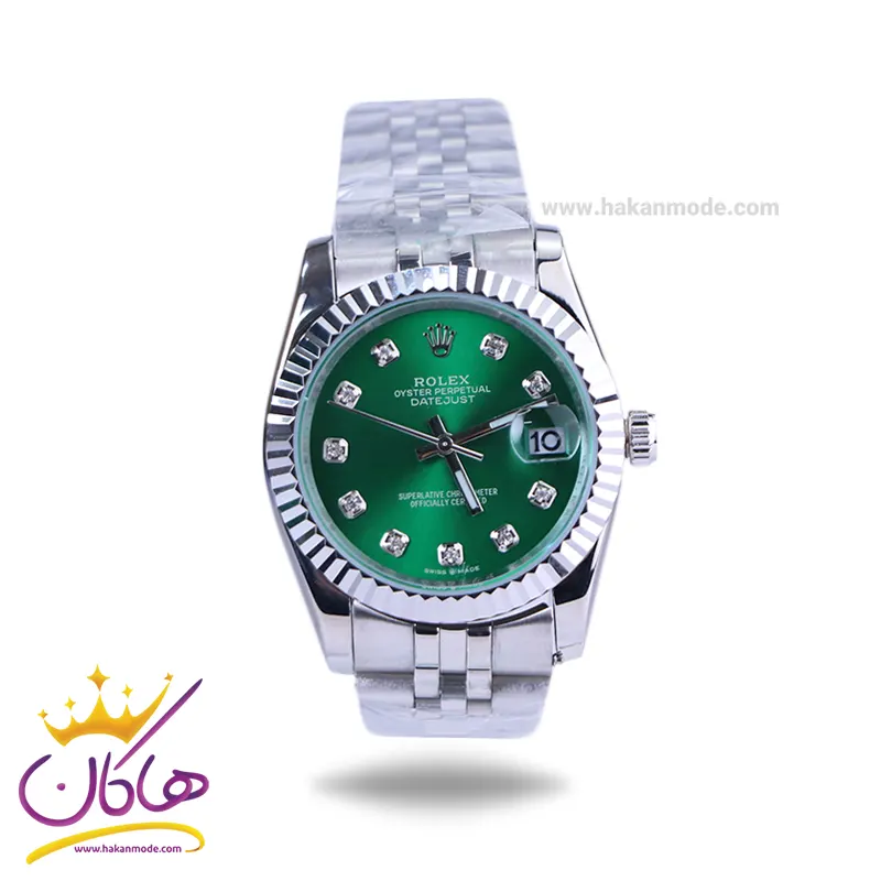 خرید ساعت رولکس مردانه فلزی دیت جاست نقره ای صفحه سبز 4043/45