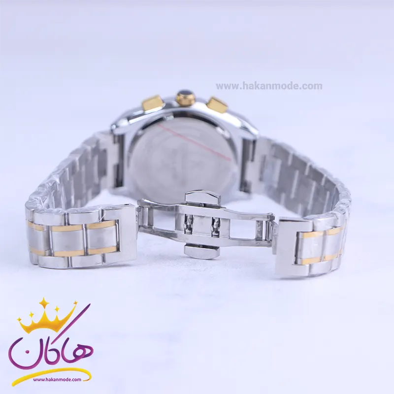ساعت مچی رومانسون زنانه فلزی ظاهری مدرن و جذاب دارد. این ساعت استیل نقرهای طلایی، رنگ ثابت و ضدحساسیت است. در واقع این ساعت، طرح سه موتوره است و صفحات کوچکی که میبینید، نمایشی هستند. عقربهها، شبنما و اندکسها خطی و طلایی هستند. اگر به درون صفحه مشکی رنگ ساعت نگاه کنید، نام برند رومانسون زیر ساعت 12 دیده میشود. یک مربع کوچک بین اعداد 4 و 5 قرار دارد که همان تقویم ساعت است. در کنار صفحه یک پیچ کوک برای تنظیم زمان وجود دارد. بند ساعت، فلزی و از نوع استیل مرغوب است که باعث تعرق و خارش نمیشود. طرح این بند از بافت ریز و درشت تشکیل شده که قسمت میانی آن طلایی و کنارههای آن نقرهای رنگ است. قفل ساعت از مدل پروانه ای دکمهدار است که از دسته قفلهای محکم و مطمئن است.