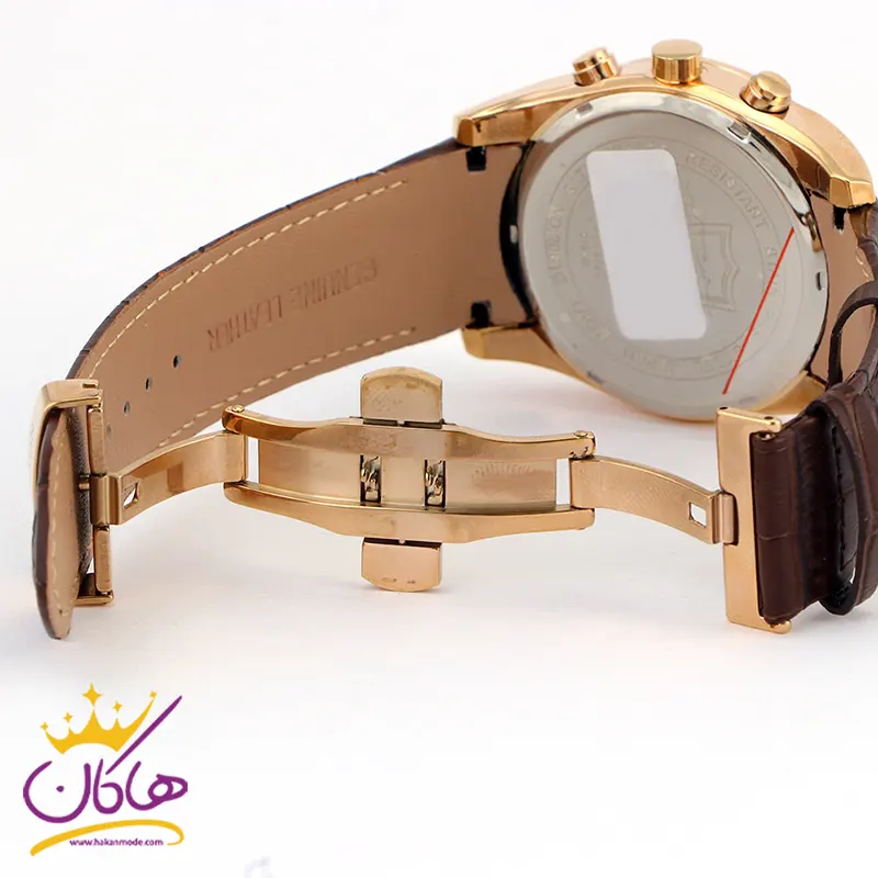 ساعت مردانه طرح رومانسون بند چرم قهوه ای یک ساعت مردانه بند چرم طرح اورجینال می باشد. صفحه ی این ساعت زیبا همرنگ بند می باشد. با قاب رزگلد زیبا طرح سه موتوره بودن آن به زیبایی هرچه تمام تر در این ساعت قرار گرفته اند که باعث خوانایی بالا صفحه آن شده اند.بند ساعت چرم و به رنگ قهوه ای قفل بند از نوع سگکی ساده و به رنگ رزگلد است.این ساعت دارای طرحی زیبا و به روز بوده و برای هر استایلی مناسب میباشد و باعث شده یک ساعت لوکس به نظر برسد. مدل سه موتره آن طرح بوده و بند این ساعت از چرم مصنوعی میباشد. این محصول با قیمتی باور نکردنی در هاکان مد ارائه شده است و با توجه به قیمت بسیار پایینی که دارد ،دارای کیفیت کاملا قابل قبولی می باشد.