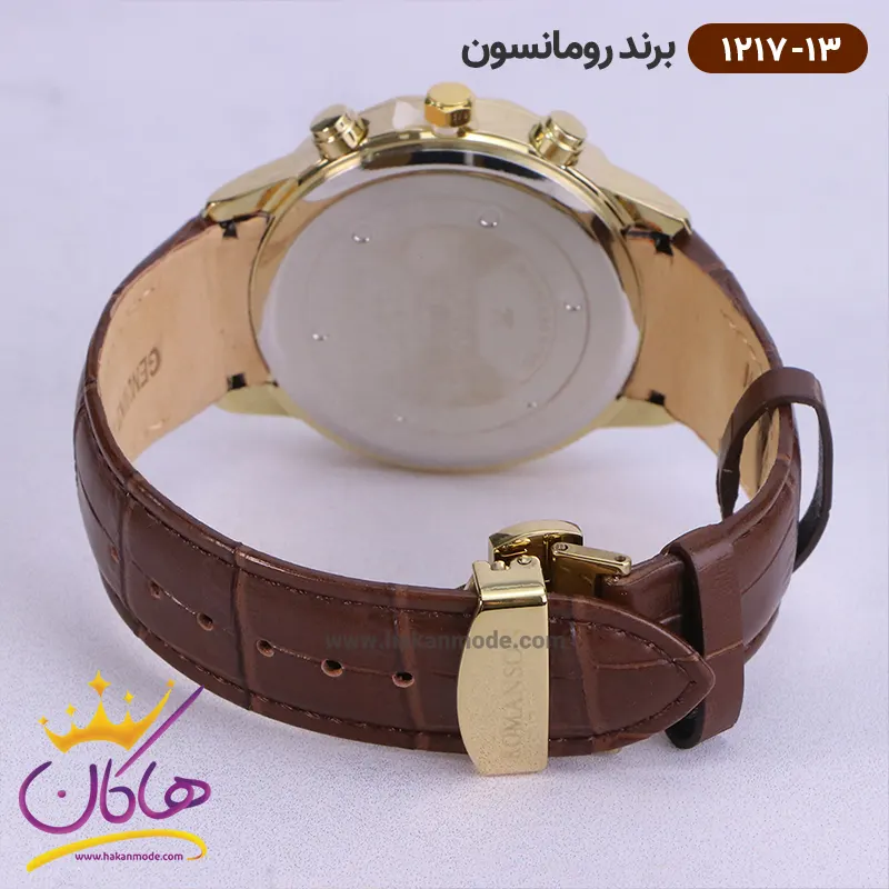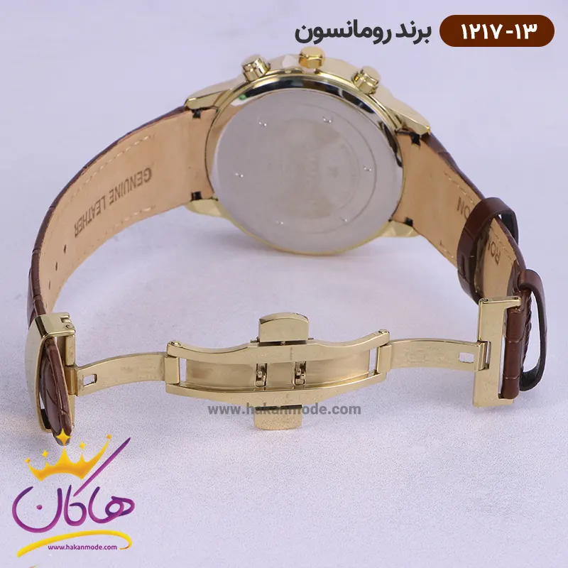 ساعت رومانسون مردانه بند چرمی 1217/13 نمای باز قفل