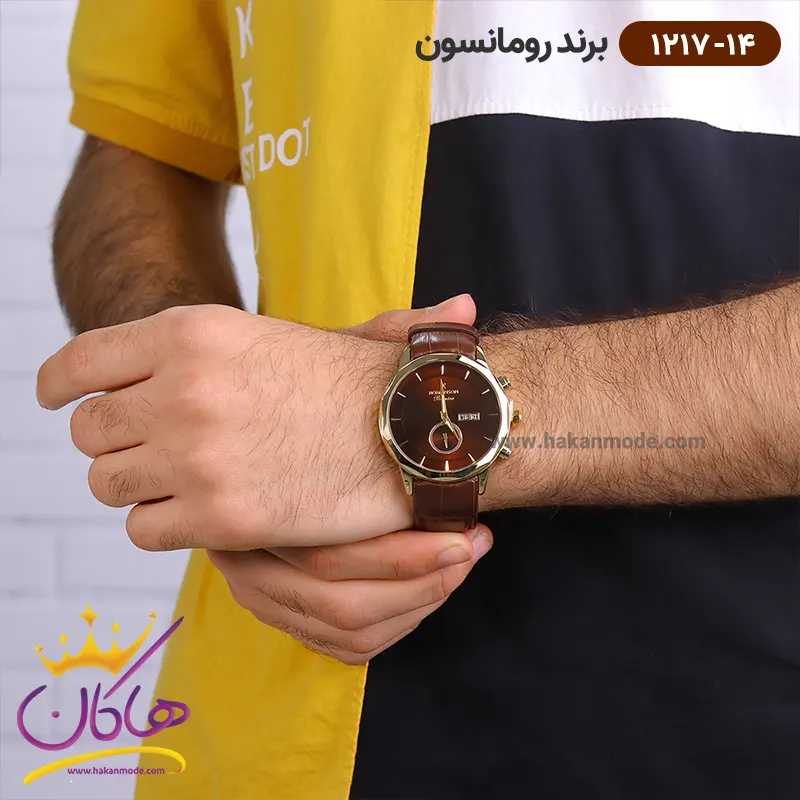بهترین قیمت ساعت رومانسون مردانه بند چرم قهوهای