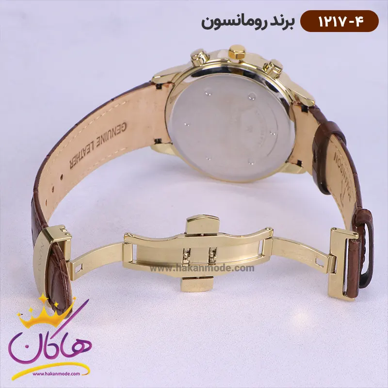 ساعت رومانسون مردانه بند چرمی 1217/4 نمای باز قفل