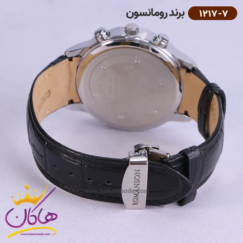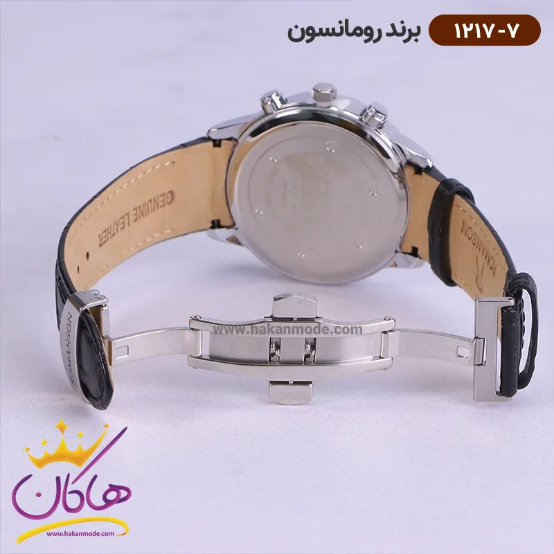 ساعت رومانسون مردانه بند چرمی 1217/7 نمای باز قفل
