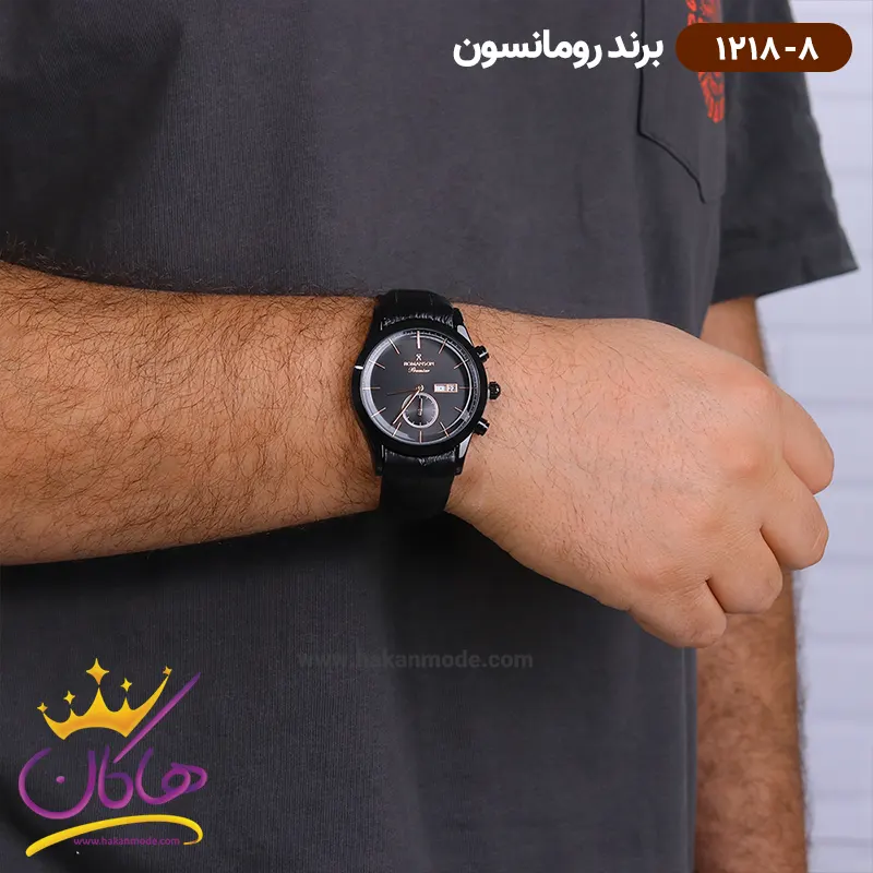 ساعت رومانسون مردانه بند چرمی 1218/8 روی دست مدل