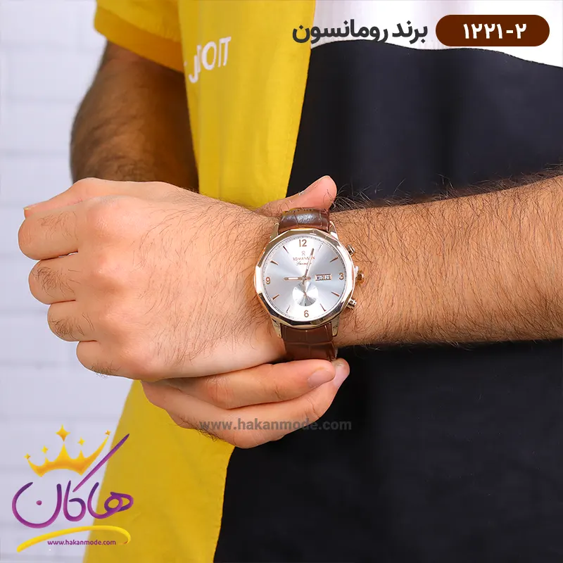 ساعت رومانسون مردانه بند چرمی 1221/2 روی دست