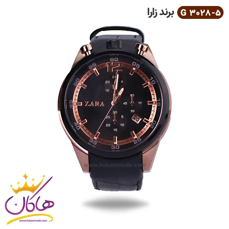 خرید ساعت زارا مردانه بند چرم مشکی رزگلد کرنوگراف G3028/5