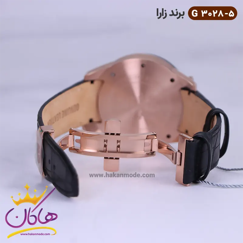 قفل ساعت زارا مردانه بند چرم مشکی رزگلد کرنوگراف G3028/5