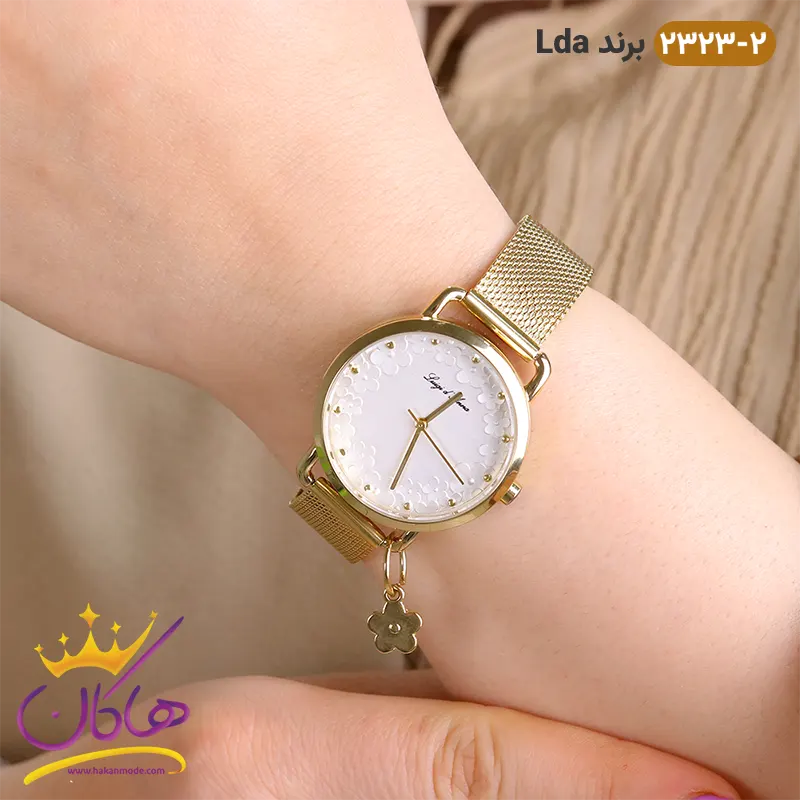 ساعت زنانه ال دی ای بند حصیری طلایی گلدار 2323/2 نمای صفحه
