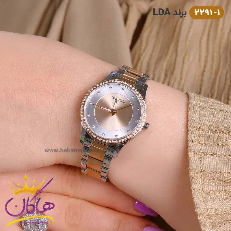 ساعت زنانه ال دی ای نگین دار نقره ای رزگلد کد 2291/1 نمای صفحه