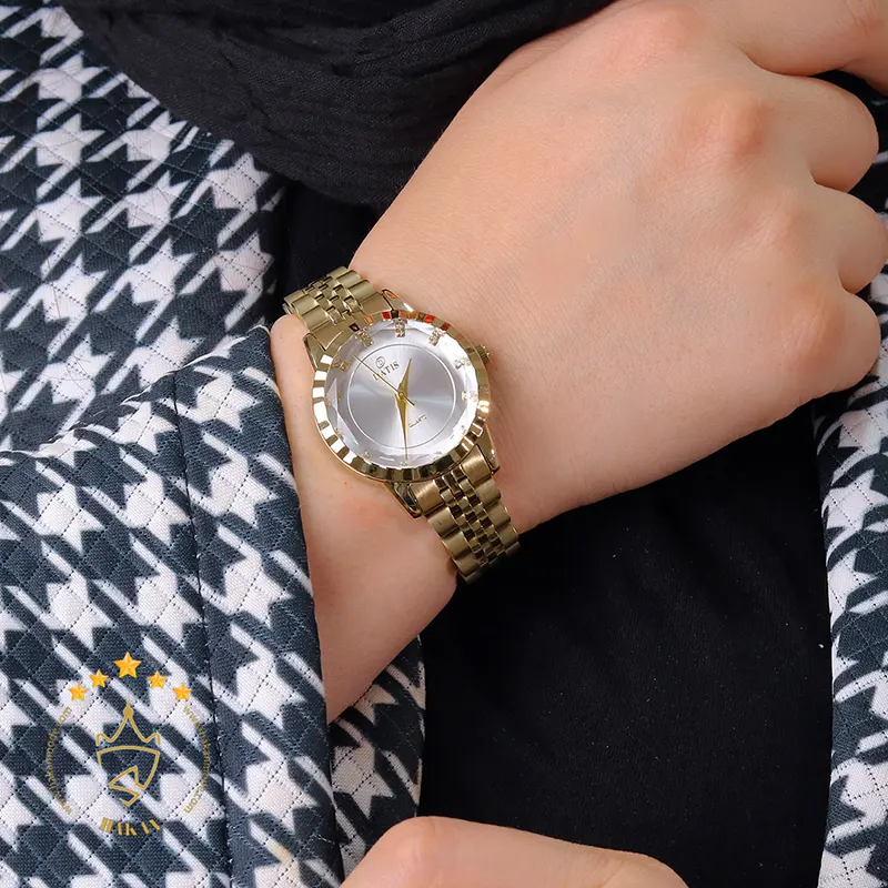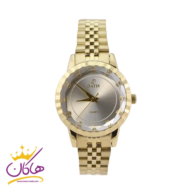 قفل ساعت زنانه داتیس بند فلزی طلایی نگین دار 8566/1