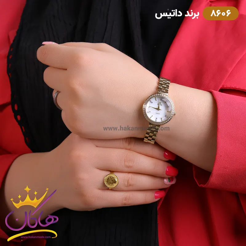 ویژگی ساعت زنانه داتیس فلزی طلایی دور نگین 8606/1