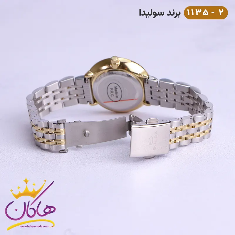 بهترین قیمت ساعت زنانه سولیدا نگین دار نقره ای طلایی