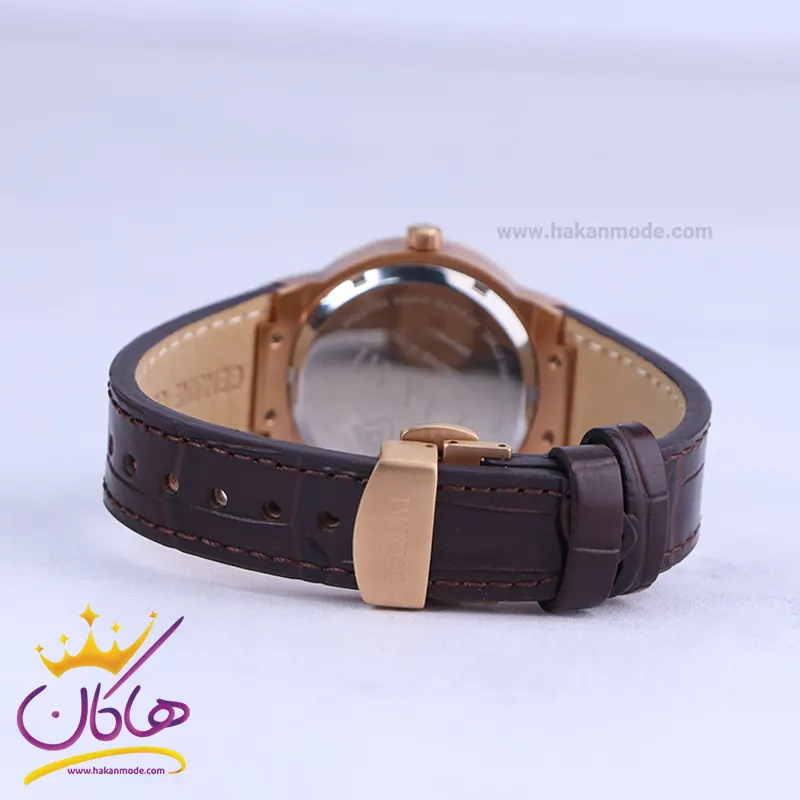 ساعت زنانه لاکسمی بند چرمی قهوه ای قاب رزگلد 8126/5