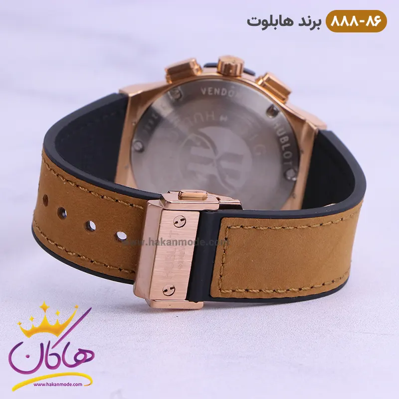با بررسی المان های ظاهری ساعت زنانه هابلوت کرنوگراف رزگلد صفحه مشکی می توان گفت بهترین گزینه برای استایل اسپرت و امروزی است. گرچه ساعت بند رابر بیشتر برای استایلهای غیررسمی و کژوال به کار می رود اما این ساعت با قاب رزگلد زیبای خود برای استایل نیمه رسمی هم مناسب است. اصلی ترین چیزی که در ساعت زنانه هابلوت کرنوگراف رزگلد صفحه مشکی توجه ما را به خود جلب می کند، هماهنگی بند جیر قهوای با صفحه مشکی ساعت است. صفحه مشکی با عقربه ها و نشانگرهای رزگلد ، زیبایی این ساعت را تکمیل کرده است. قسمت اتصال بند به قاب و پیچ کوک رزگلد رنگ هستند. جنس قاب و قفل از استیل مرغوب با آبکاری قوی، جنس بند از لاستیک باکیفیت pu (رابر) با روکش جیر و شیشه از متریال عالی و ضدخش است.