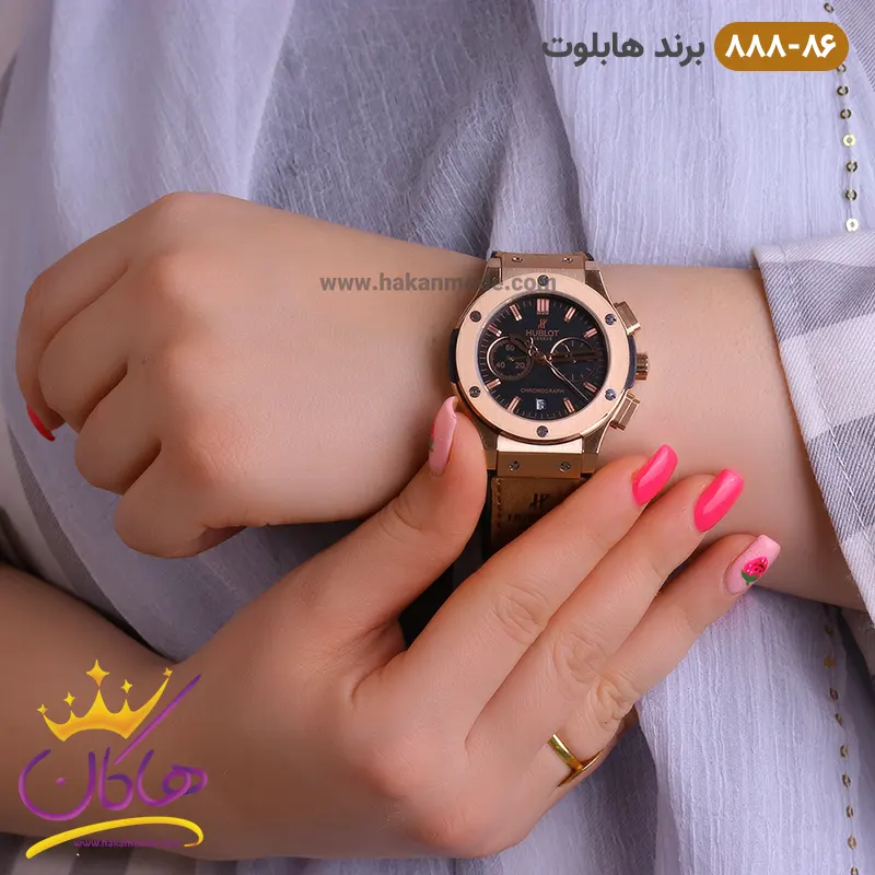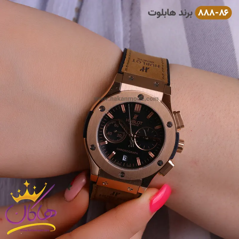 بهترین قیمت ساعت زنانه هابلوت کرنوگراف رزگلد صفحه مشکی