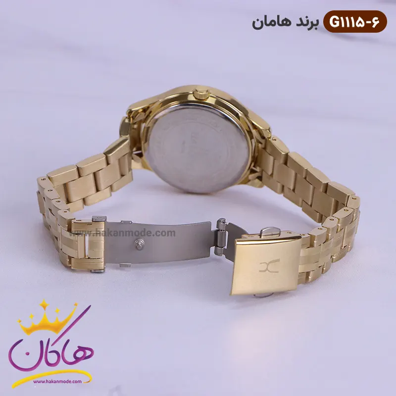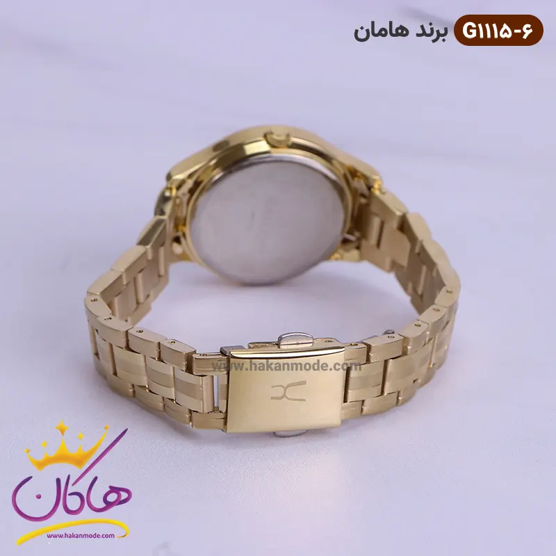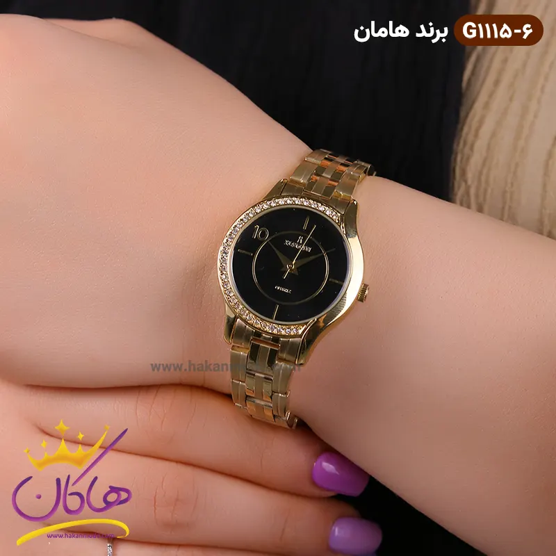 بند ساعت زنانه هامان طلایی صفحه مشکی کد L 1115/6
